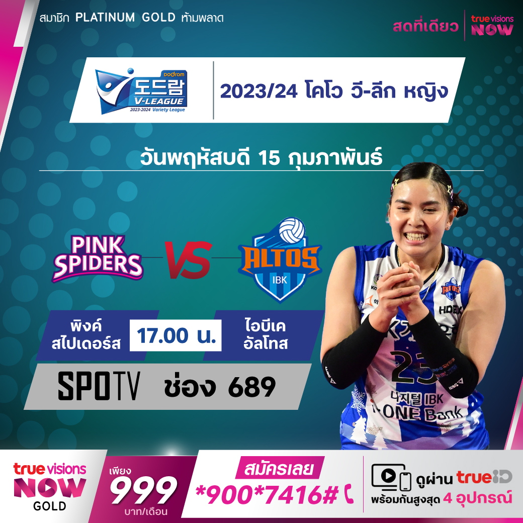PINK SPIDERS vs IBK ALTOS เวลา 17.00 ทางช่อง SPOTV (689)