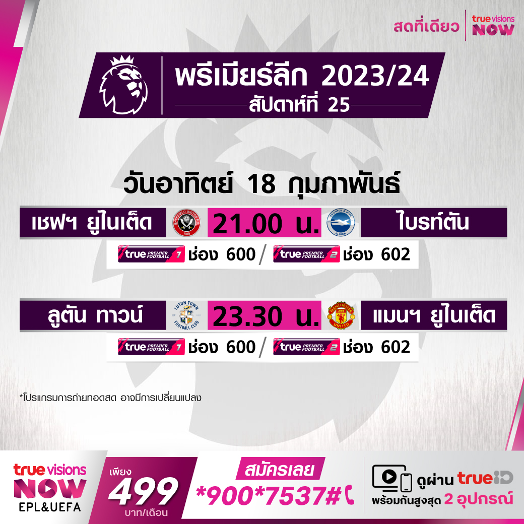 Luton Town vs Man Utd เวลา 23:30 - 01:30 ทางช่อง TPF 1(600) / TPF 2 (602)