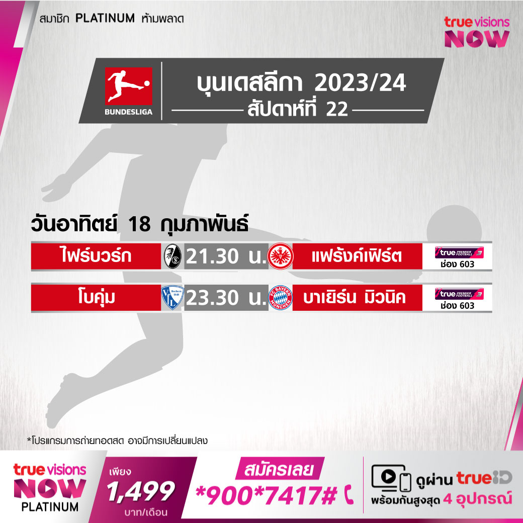 VfL Bochum vs Bayern เวลา 23.30-01.30 ทางช่อง TPF 3 (603)