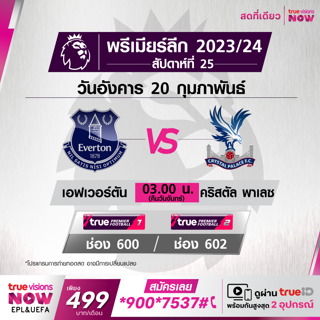Everton vs Crystal Palace เวลา 03:00 - 05:00 ทางช่อง TPF 1(600) / TPF 2 (602)