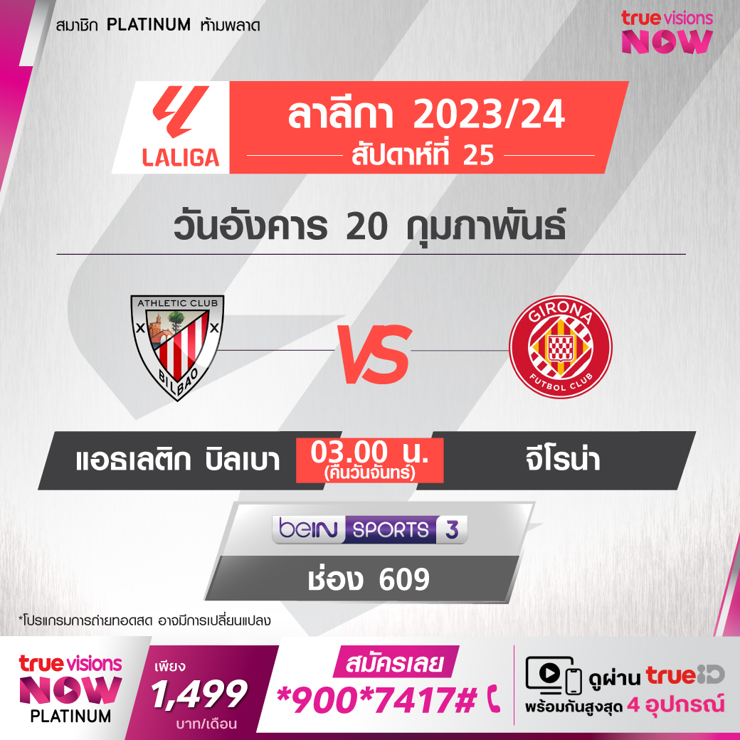 Athletic vs Girona เวลา 03.00-05.00 ทางช่อง beIN 3 (609)