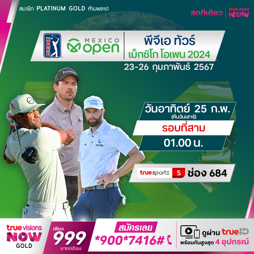 กอล์ฟ พีจีเอ ทัวร์ สัปดาห์นี้พบกับรายการ เม็กซิโก โอเพ่น ลุ้นโปรดังๆ ระดับโลกแย่งแชมป์ พร้อมกับชิงเงินรางวัลมหาศาล 8,100,000 เหรียญสหรัฐฯ จากสนาม วิดันต้า วัลลาร์ต้า ประเทศเม็กซิโก ใครจะเป็นแชมป์ในปีนี้ ชมสด เอ็กซ์คลูซีฟ ครบทุกรอบ ที่ ทรูวิชั่นส์