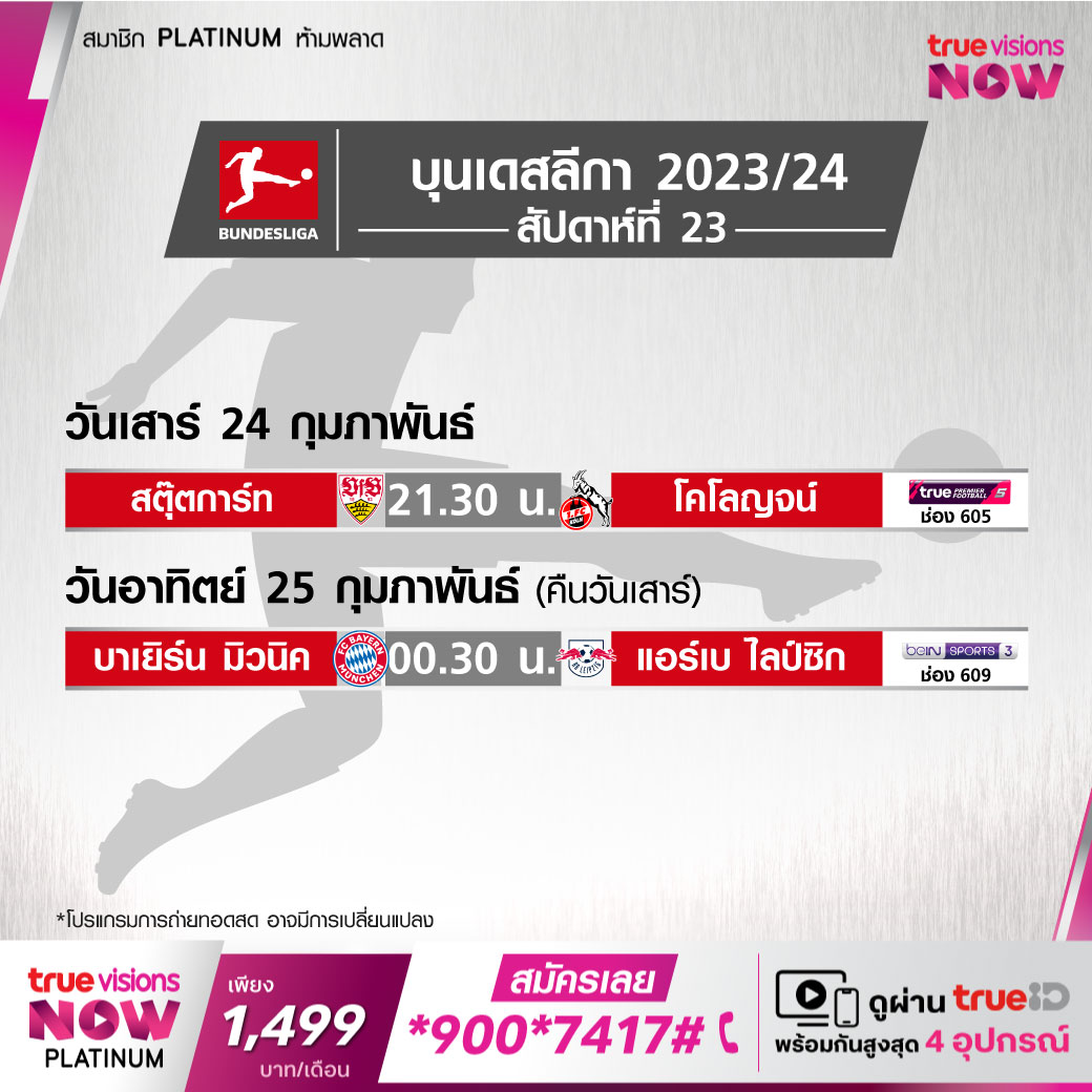 Bayern vs Leipzig เวลา 00.30-02.30 ทางช่อง beIN 3 (609)