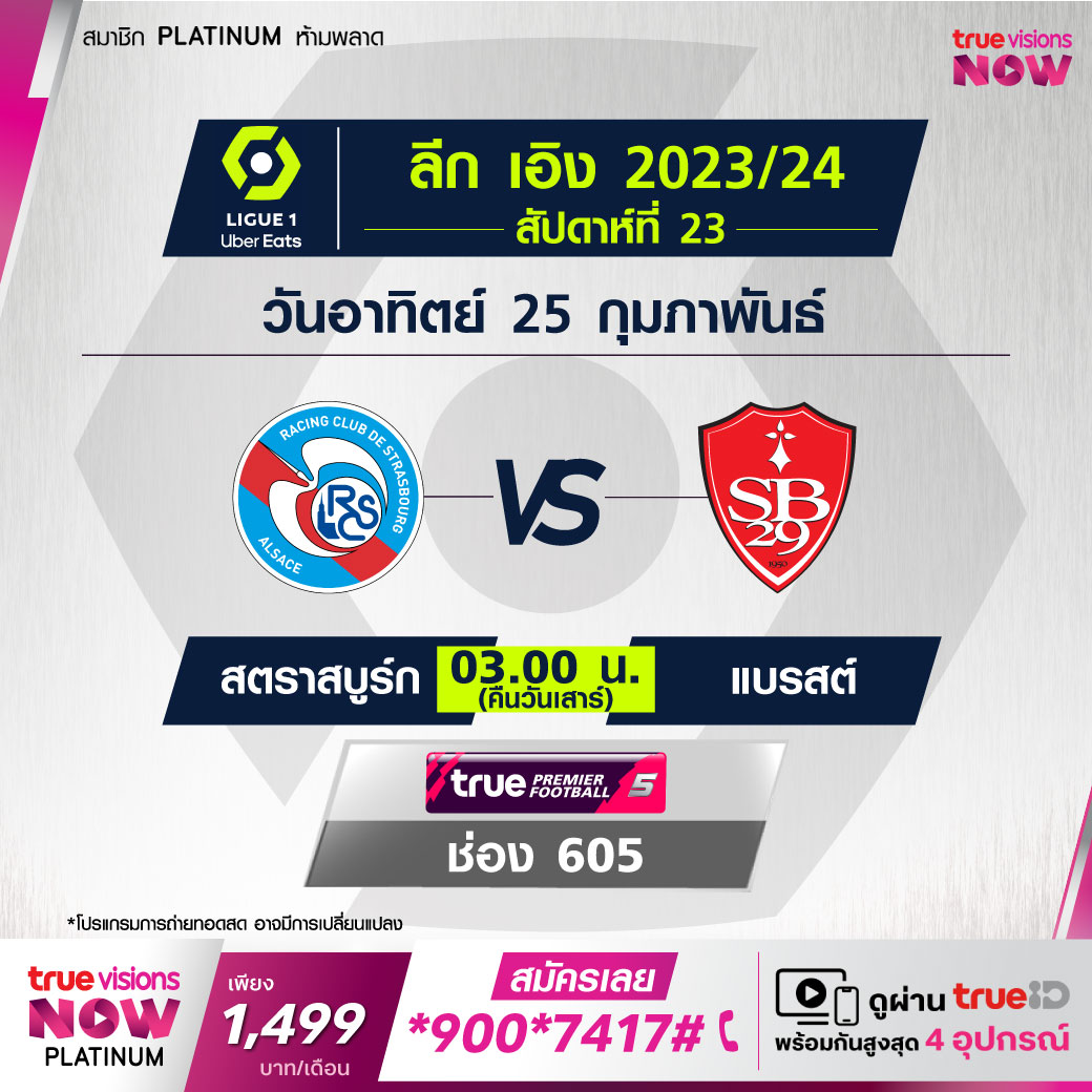 Strasbourg vs Brest เวลา 03.00-05.00 ทางช่อง TPF 5 (605)