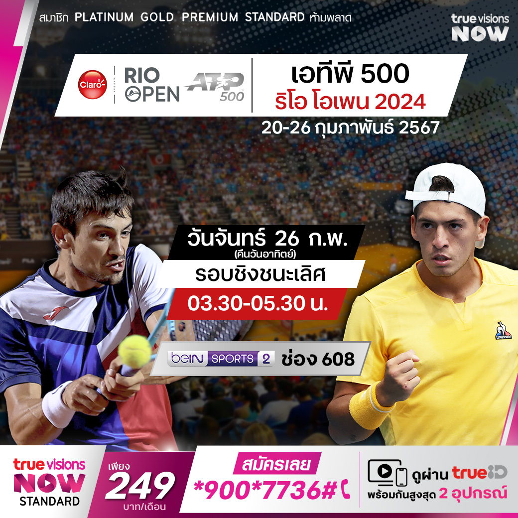 เทนนิสเอทีพี ทัวร์ สัปดาห์นี้ พบกับรายการ ริโอ โอเพ่น การแข่งขันเทนนิสรายการคอร์ทดินระดับ ATP 500 ที่ใหญ่ที่สุดในทวีปอเมริกาใต้ ที่นคร ริโอ เด จาเนโร ประเทศบราซิล เหล่าสตาร์ชื่อดังลงสนามกันคับคั่ง นำโดย คาร์ลอส อัลคาราซ ร่วมลุ้นกันว่าใครจะคว้าแชมป์รายการนี้ไปครอง ชมสด ที่ ทรูวิชั่นส์