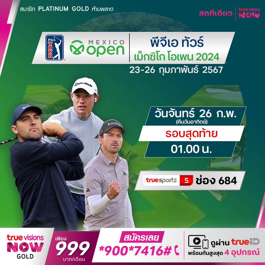 กอล์ฟ พีจีเอ ทัวร์ สัปดาห์นี้พบกับรายการ เม็กซิโก โอเพ่น ลุ้นโปรดังๆ ระดับโลกแย่งแชมป์ พร้อมกับชิงเงินรางวัลมหาศาล 8,100,000 เหรียญสหรัฐฯ จากสนาม วิดันต้า วัลลาร์ต้า ประเทศเม็กซิโก ใครจะเป็นแชมป์ในปีนี้ ชมสด เอ็กซ์คลูซีฟ ครบทุกรอบ ที่ ทรูวิชั่นส์