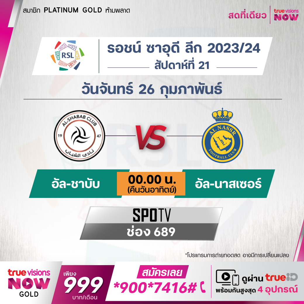 Al-Shabab vs Al-Nassr เวลา 00.00-02.00 ทางช่อง SPOTV (689)