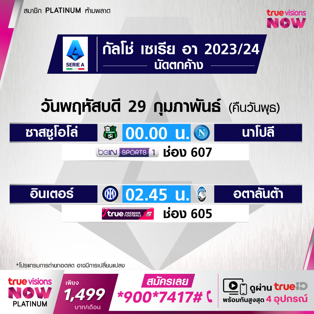 Inter vs Atalanta เวลา 02.45-04.45 ทางช่อง TPF 5 (605)