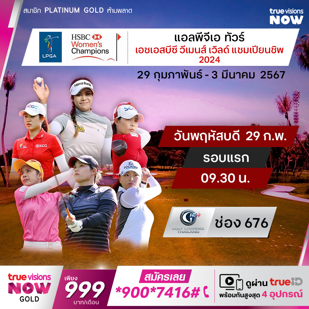 กอล์ฟหญิง แอลพีจีเอ ทัวร์ ยังคงปักหลักแข่งกันในอาเซี่ยนเป็นสัปดาห์ที่ 2 ติดต่อกัน และเป็นอีกหนึ่งรายการที่แฟนๆ จะต้องชมกันให้ได้กับศึกเอชเอสบีซี วีเมนส์ เวิลด์ แชมเปี้ยนชิพ ที่สนาม เซนโตซ่า กอล์ฟ คลับ (แทนจอง คอร์ส) ในประเทศสิงคโปร์ ร่วมเชียร์โปรสาวไทย แข่งขันกับโปรชั้นนำของโลก เพื่อตำแหน่งแชมป์แห่งศักดิ์ศรี ชมสดครบทุกรอบที่ ทรูวิชั่นส์