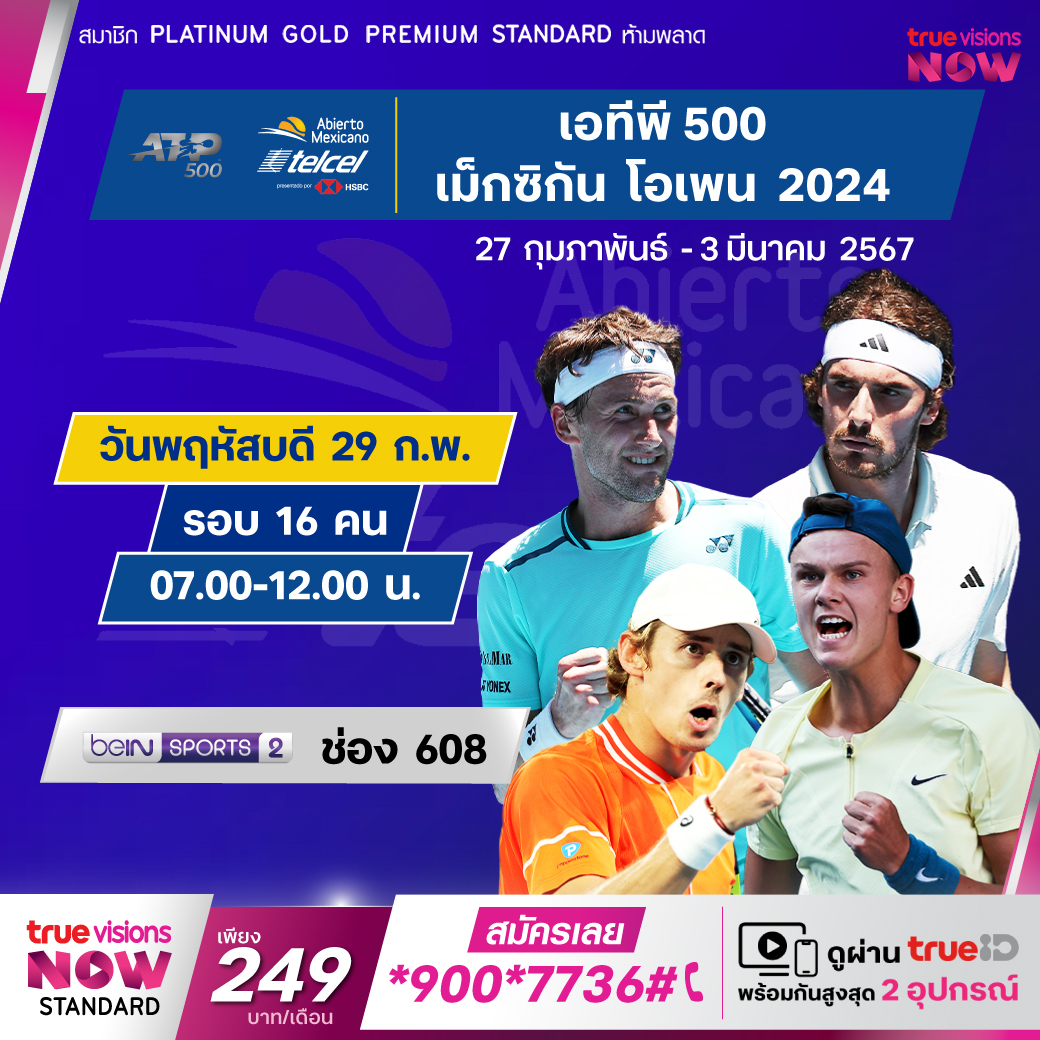 อีกหนึ่งรายการของ เอทีพี ทัวร์ สัปดาห์นี้ กับเทนนิสฮาร์ทคอร์ทที่ใหญ่ที่สุดในภูมิภาคละตินอเมริกา ในรายการ เม็กซิกัน โอเพ่น ที่ประเทศเม็กซิโก นำโดย อเล็กซานเดอร์ ซเวเรฟ, เทเลอร์ ฟรีส และแชมป์เก่า อเล็กซ์ เดอ มินอร์ ร่วมลุ้นว่าใครจะคว้าแชมป์รายการนี้ไปครอง ชมสด ที่ ทรูวิชั่นส์
