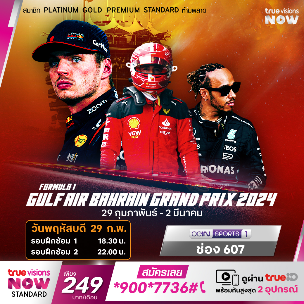สิ้นสุดการรอคอย สำหรับสาวก ฟอร์มูล่า เวิลด์ แชมเปี้ยนชิพ เตรียมตัวให้พร้อมสำหรับการเปิดฤดูกาล 2024 สุดยิ่งใหญ่ สนามแรกของปีในรายการ บาห์เรน กรังด์ปรีซ์ ที่ทุกทีมต่างก็พร้อมจะช่วงชิงทำผลงานให้ทะลุเป้า ทีมใดจะเปิดตัวสวย ทีมใดจะจบด้วยอันดับที่ดีที่สุด เพื่อคะแนนสะสมอันล้ำค่า ชมสดทุกช่วงการแข่งขันแบบเอ็กซ์คลูซีฟ ที่เดียวที่ ทรูวิชั่นส์