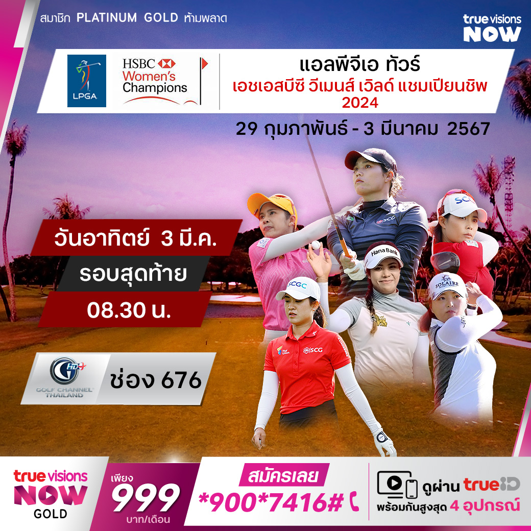 กอล์ฟหญิง แอลพีจีเอ ทัวร์ รายการ เอชเอสบีซี วีเมนส์ เวิลด์ แชมเปี้ยนชิพ ที่สนาม เซนโตซ่า กอล์ฟ คลับ (แทนจอง คอร์ส) ในประเทศสิงคโปร์ ร่วมเชียร์โปรสาวไทย แข่งขันกับโปรชั้นนำของโลก เพื่อตำแหน่งแชมป์แห่งศักดิ์ศรี ชมสดครบทุกรอบที่ ทรูวิชั่นส์