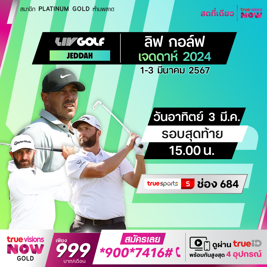 ลิฟกอล์ฟ รายการที่ 3 ของฤดูกาล ที่เมืองเจดดาห์ ประเทศซาอุดิอาระเบีย ชมลีลาของโปรระดับโลกที่จะสู้กันเพื่อตำแหน่งแชมป์ที่เข้มข้น ทั้งประเภททีมและประเภทบุคคล กับเงินรางวัลความสำเร็จมหาศาล ชมสดครบทุกรอบ เอ็กซ์คลูซีฟ ที่เดียวที่ ทรูวิชั่นส์