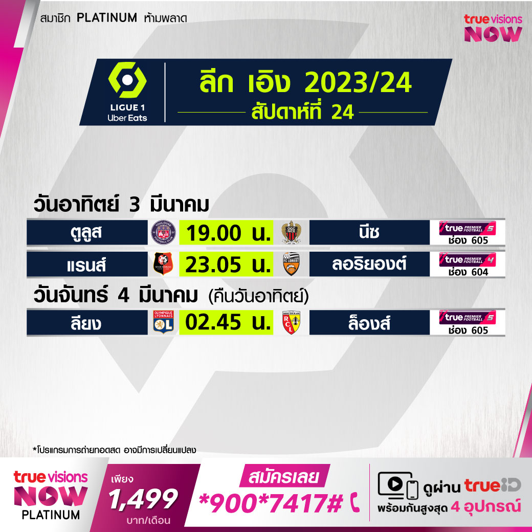 Lyon vs Lens เวลา 02.45-04.45 ทางช่อง TPF 5 (605)