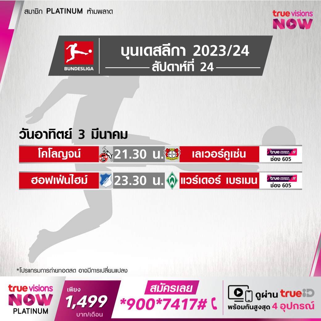 Hoffenheim vs Bremen เวลา 23.30-01.30 ทางช่อง TPF 5 (605)