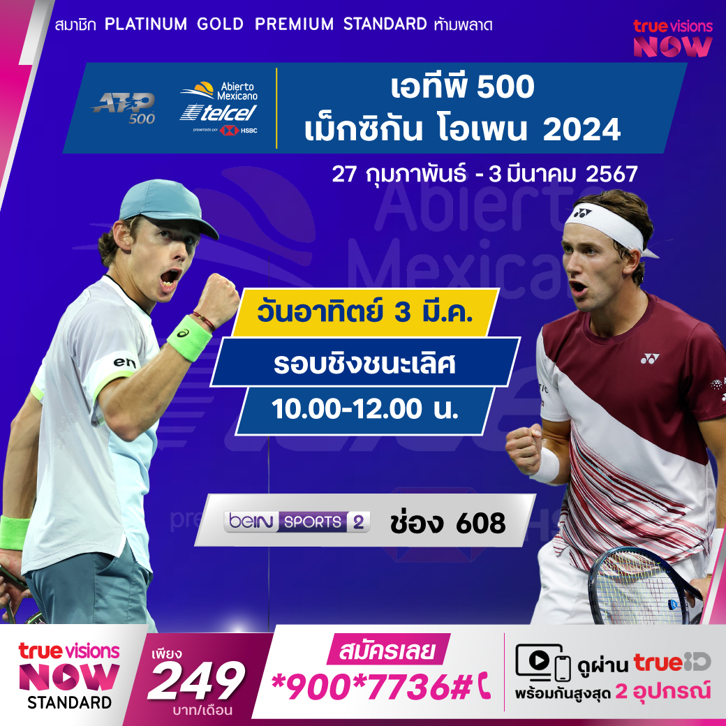 เทนนิส เอทีพี ทัวร์ รายการ เม็กซิกัน โอเพ่น ที่ประเทศเม็กซิโก มาถึงในรอบชิงชนะเลิศ ร่วมลุ้นว่าใครจะคว้าแชมป์รายการนี้ไปครอง ชมสด ที่ ทรูวิชั่นส์