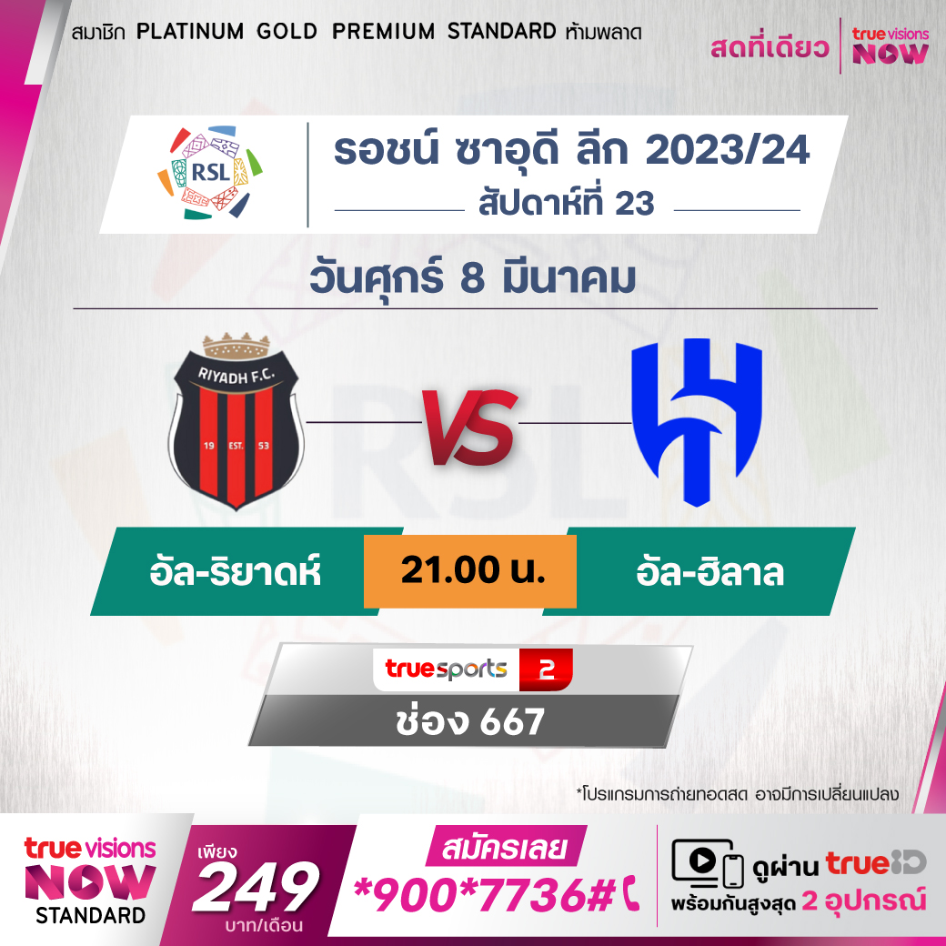 Al-Riyadh vs Al-Hilal เวลา 21.00-23.00 ทางช่อง TS 2 (667)
