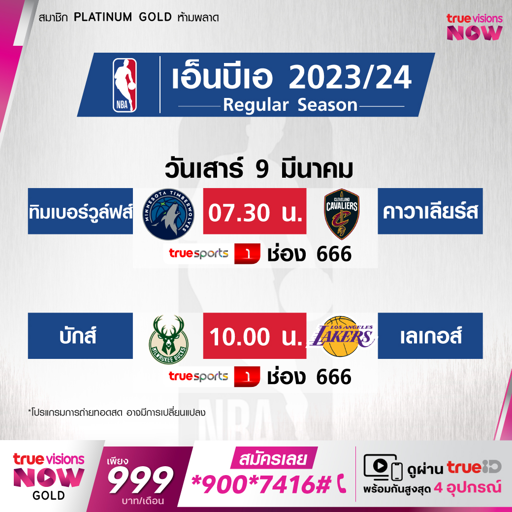 วันเสาร์ 9 มี.ค. Bucks Vs Lakers เวลา 10.00 ทางช่อง TS 1 (666)