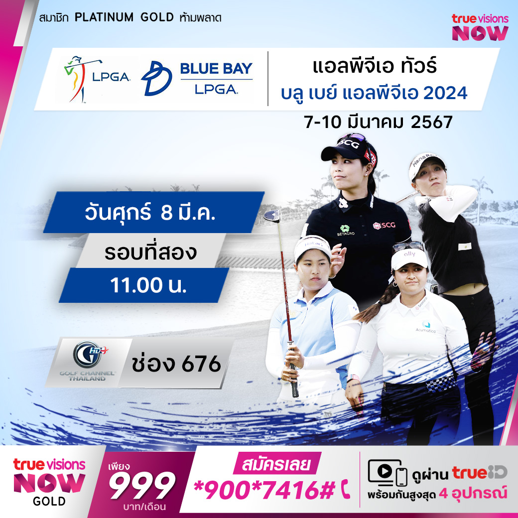 เชียร์โปรสาวไทยกันยาวๆ สำหรับศึกกอล์ฟหญิง แอลพีจีเอ ทัวร์ ที่ยังสร้างสีสันและขับเคี่ยวชิงแชมป์กันอย่างดุเดือด กับการแข่งขันช่วงเอเชียน สวิง เป็นสัปดาห์ที่ 3 ในทวีปเอเชีย กับรายการ บลู เบย์ แอลพีจีเอ ที่สนาม เจียน เลค บลู เบย์ กอล์ฟ คลับ ชิงเงินรางวัล 2,200,000 เหรียญสหรับฯ ที่เกาะไหหนาน ประเทศจีน ใครจะได้แชมป์ไปครอง ใครจะทำสถิติใหม่ให้กับวงการ ลุ้นกันสดๆ จุใจ ทุกรอบสำคัญ ที่ ทรูวิชั่นส์