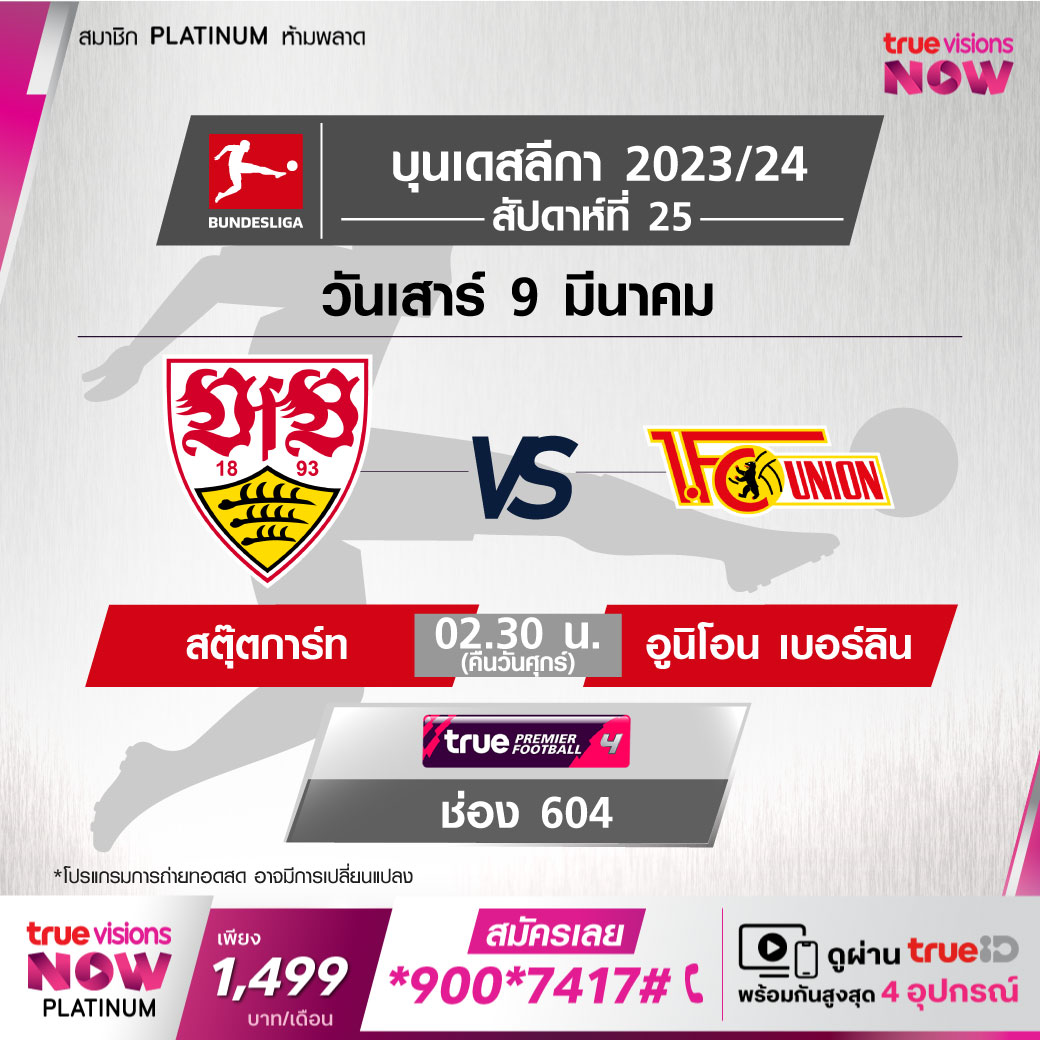 Stuttgart vs FC Union เวลา 02.30-04.30 ทางช่อง TPF 4 (604)