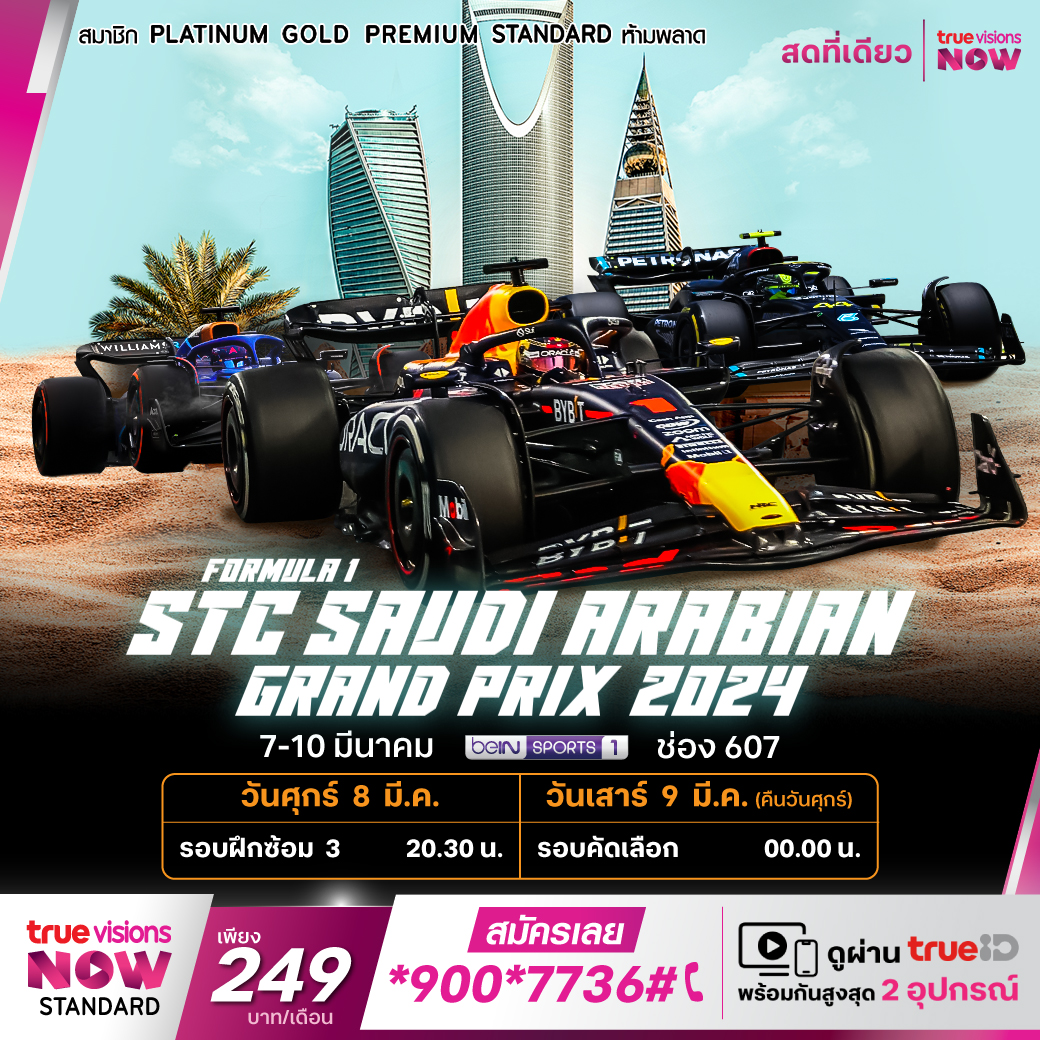แฟนๆ เอฟ-วัน มันส์กันต่อเนื่องกับสนามที่ 2 ของการแข่งขัน ฟอร์มูล่า วัน เวิลด์ แชมเปี้ยนชิพ ที่ยังปักหลักดวลความเร็วเพื่อตำแหน่งแชมป์ที่ตะวันออกกลาง กับรายการ ซาอุดิอาระเบียน กรังด์ปรีซ์ จากสังเวียน เจดดาห์ คอร์นิช เซอร์กิต ประเทศซาอุดิอาระเบีย ทีมใดจะคว้าชัย ทีมใด จะคว้าแต้มสะสมไปได้ ชมสดทุกช่วงการแข่งขัน เอ็กซ์คลูซีฟ ที่เดียวที่ ทรูวิชั่นส์
