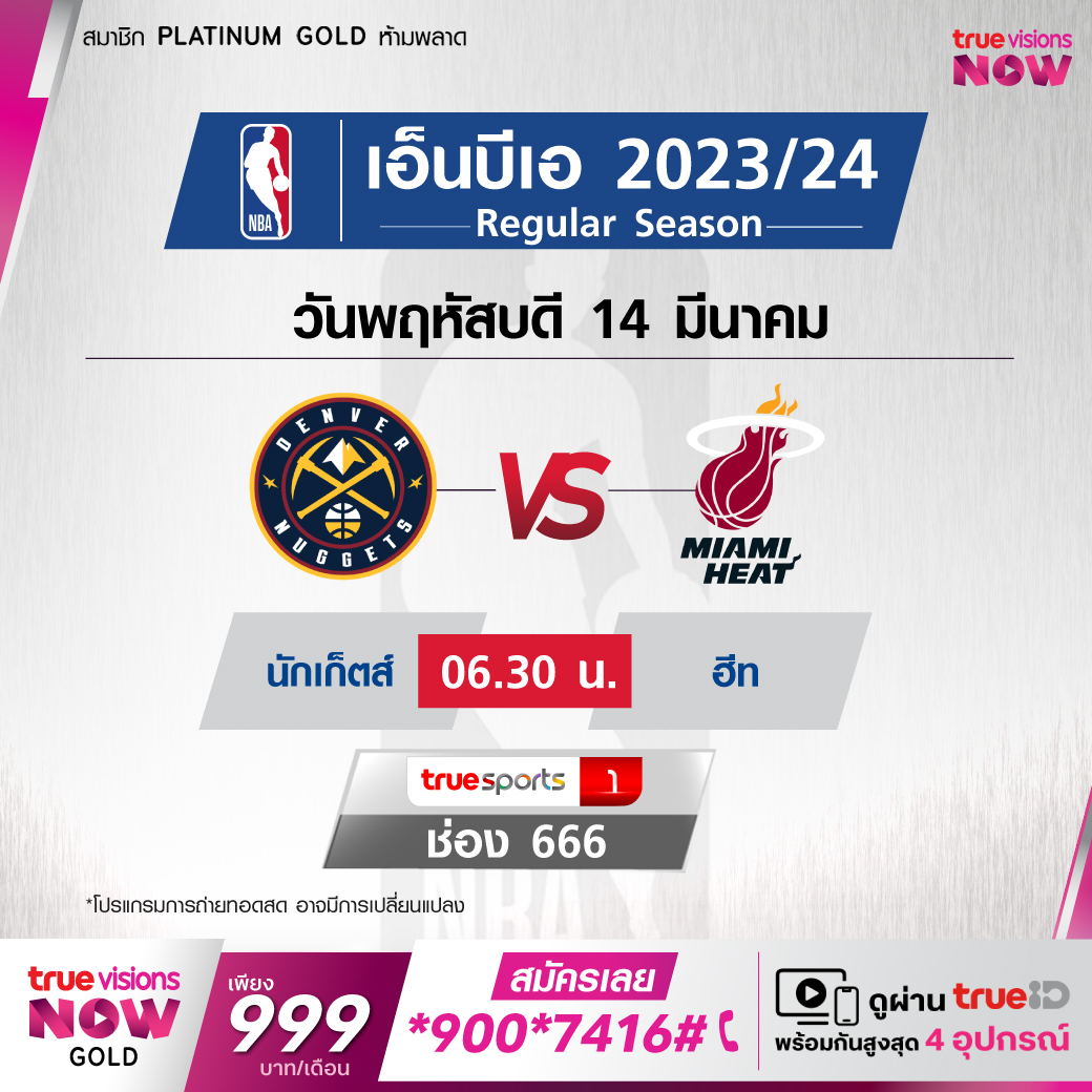 วันพฤหัสบดี 14 มี.ค. Nuggets Vs Heat เวลา 06.30 ทางช่อง TS 1 (666)