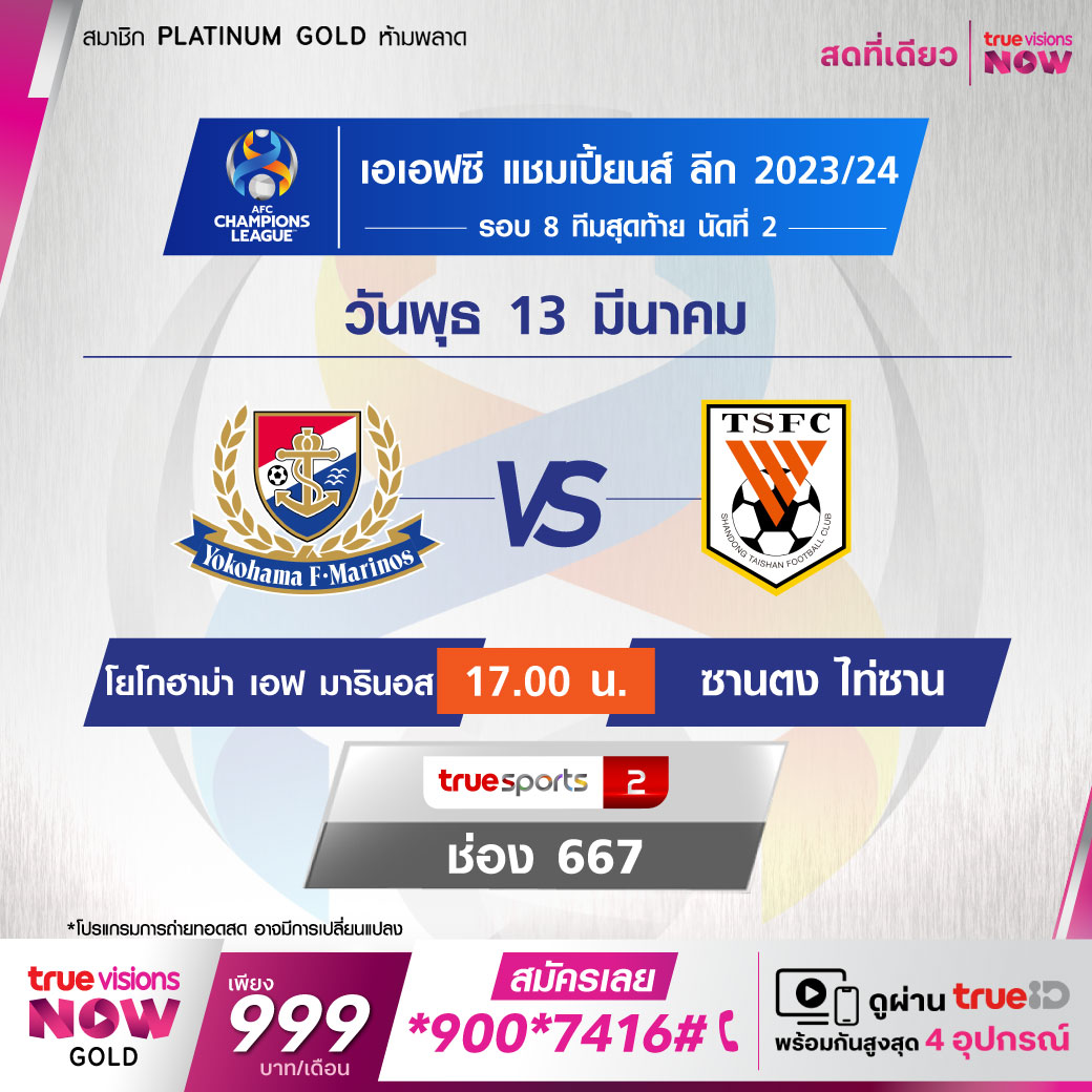 Yokohama FM vs Shandong Taishan เวลา 17.00-21.00 ทางช่อง TS 2 (667)