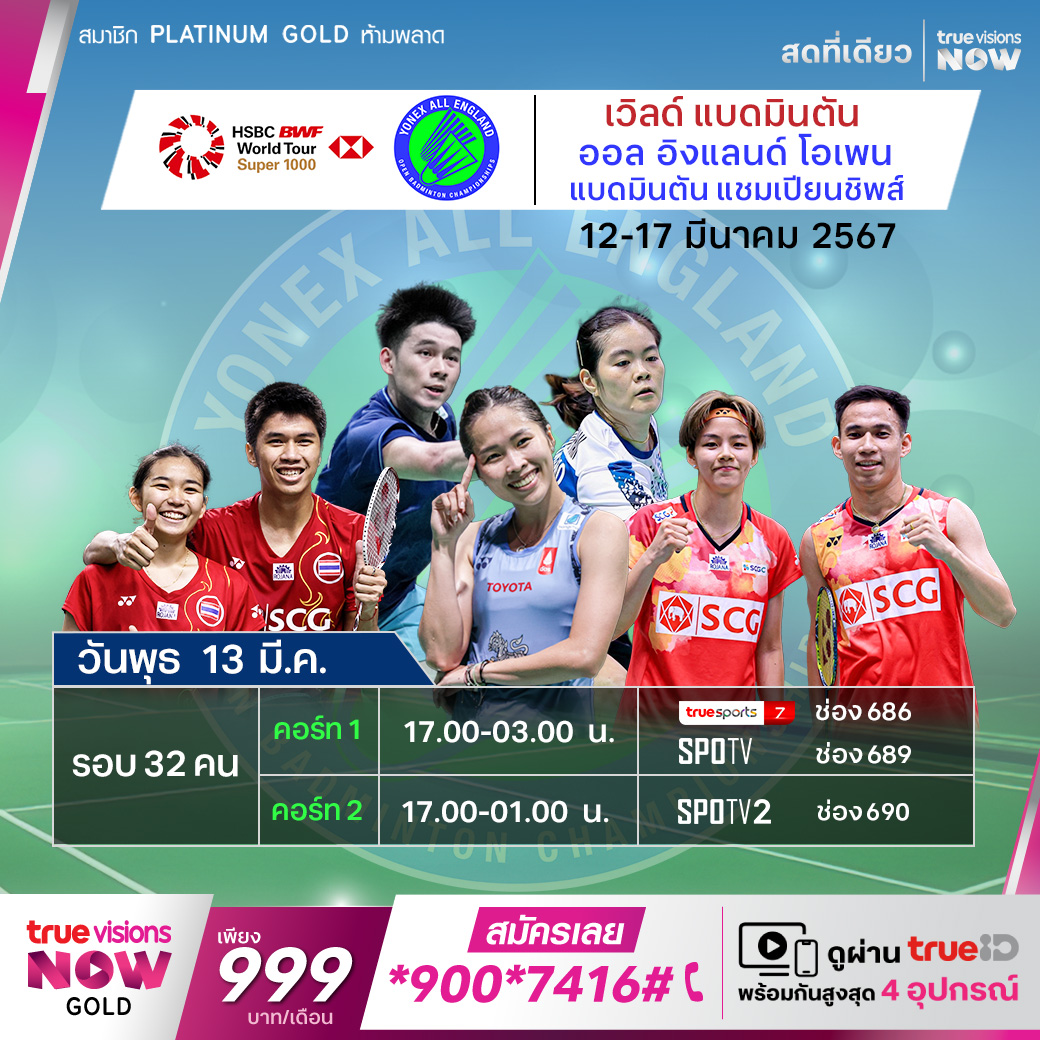 มาถึงแล้วกับความยิ่งใหญ่ของกีฬาแบดมินตัน ออล อิงแลนด์ โอเพ่น แบดมินตัน แชมเปี้ยนชิพ 2024 ระดับ เวิลด์ ทัวร์ ซูเปอร์ 1000 รายการที่เก่าแก่และคลาสสิก ที่มีประวัติศาสตร์ยาวนานนับศตวรรษ มือระดับโลกจากทุกทวีป รวมทั้งทัพใหญ่ของนักแบดมินตันไทย บินตรงร่วมศึกเพื่อลุ้นคว้าชัยชนะและก้าวสู่บัลลังก์แชมป์อันทรงเกียรติ สดครบจุใจ ทุกรอบ แบบเอ็กซ์คลูซีฟ ที่เดียวที่ ทรูวิชั่นส์