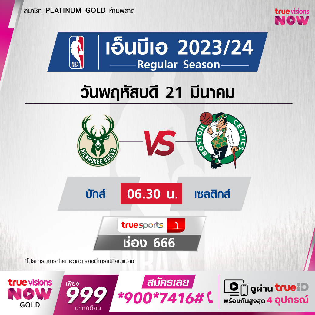 วันพฤหัสบดี 21 มี.ค. Bucks Vs Celtics เวลา 06.30 ทางช่อง TS 1 (666)