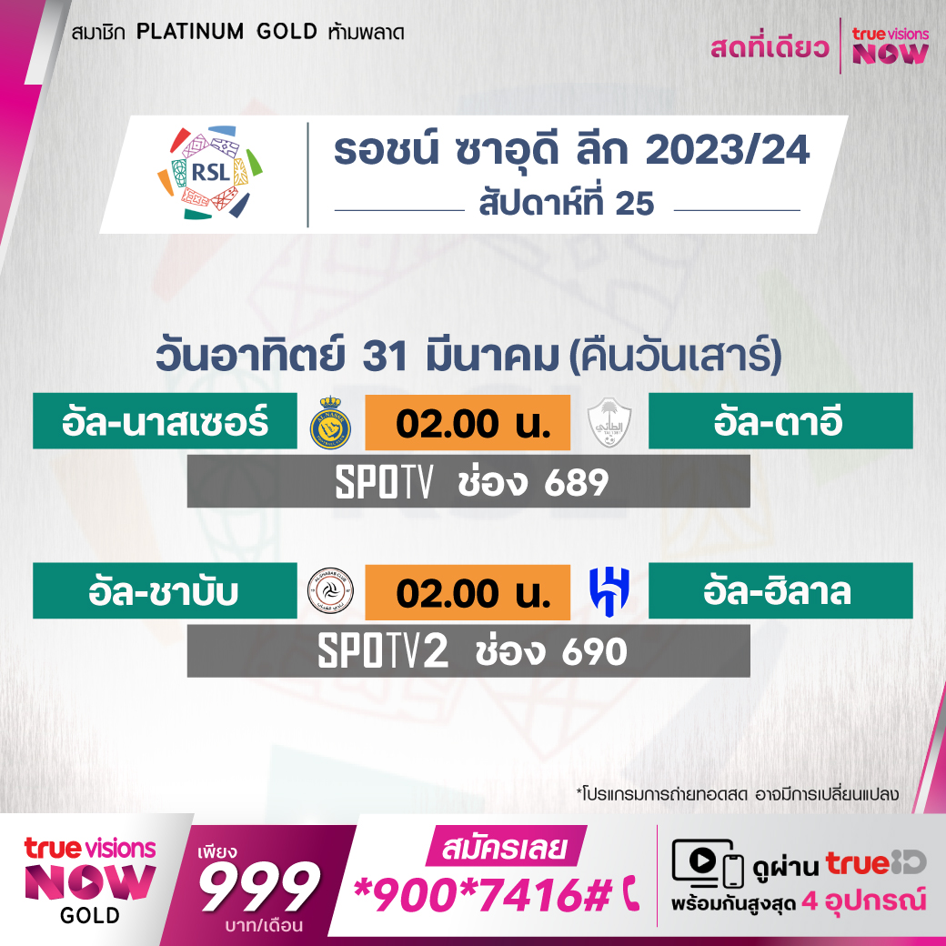 Al-Nassr vs Al-Tai เวลา 02.00-04.00 ทางช่อง SPOTV (689)