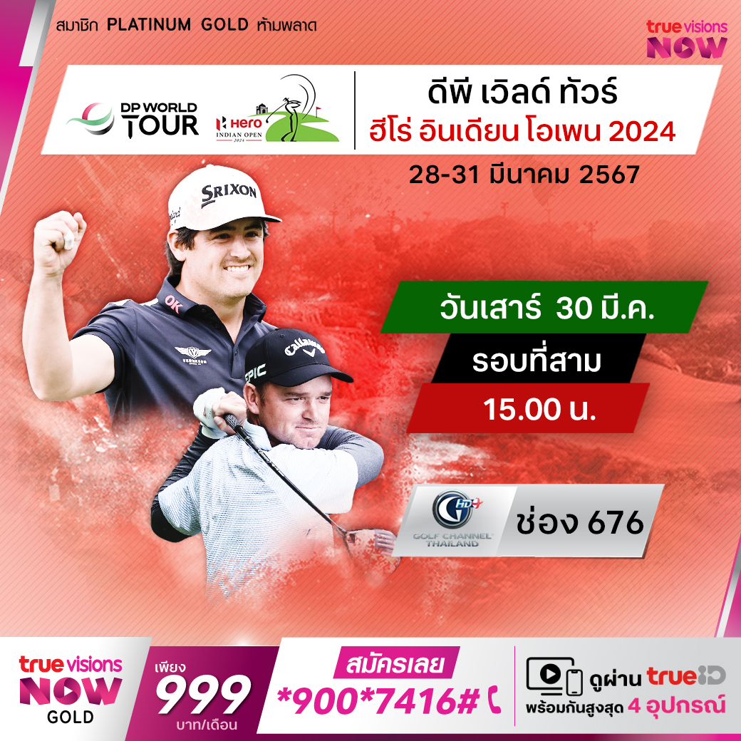 กอล์ฟ ดีพี เวิลด์ ทัวร์ รายการ ฮีโร่ อินเดียน โอเพ่น ที่สนาม ดีแอลเอฟ กอล์ฟ แอนด์ คันทรี่ คลับ กรุงนิวเดลี ประเทศอินเดีย ร่วมเชียร์โปรหนุ่มไทยและโปรจากนานาชาติลุ้นแชมป์ และชิงเงินรางวัลรวม 2,250,000 เหรียญสหรัฐฯ ชมสดครบทุกรอบที่ ทรูวิชั่นส์