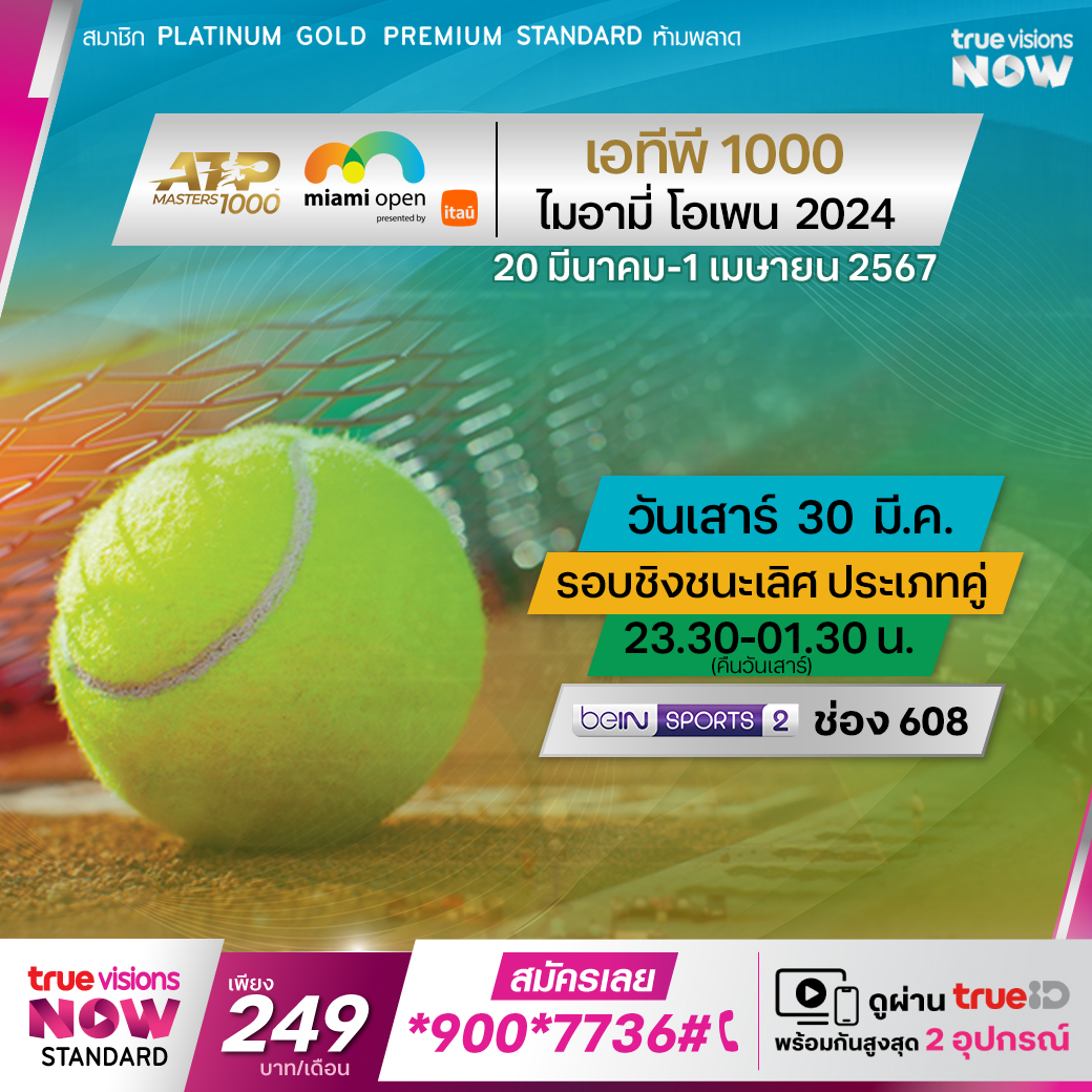 เทนนิสชาย เอทีพี ทัวร์ รายการ ไมอามี่ โอเพ่น เทนนิสรายการใหญ่ส่งท้ายบนทวีปอเมริกาเหนือในช่วงต้นปี เดินทางมาถึงในรอบชิงชนะเลิศประเภทคู่แล้ว ร่วมลุ้นว่าใครจะคว้าแชมป์ไปครอง ติดตามชมการถ่ายทอดสดได้ที่ ทรูวิชั่นส์