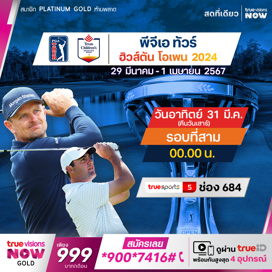 กอล์ฟ พีจีเอ ทัวร์ รายการ เท็กซัส ชิลเดรนส์ ฮูสตัน โอเพ่น 2024 ที่สนาม เมมโมเรี่ยล พาร์ค กอล์ฟ คอร์ส เมืองฮูสตัน รัฐเท็กซัส โดยมีเงินรางวัลรวมให้ชิงกันมากถึง 9,100,000 เหรียญสหรัฐฯ หรือประมาณ 323 ล้านบาท ร่วมลุ้นกันว่าใครจะเข้ารอบ ใครจะขึ้นนำ และก้าวขึ้นเป็นแชมป์รายการนี้ ชมสด เอ็กซ์คลูซีฟ ที่เดียว ที่ทรูวิชั่นส์