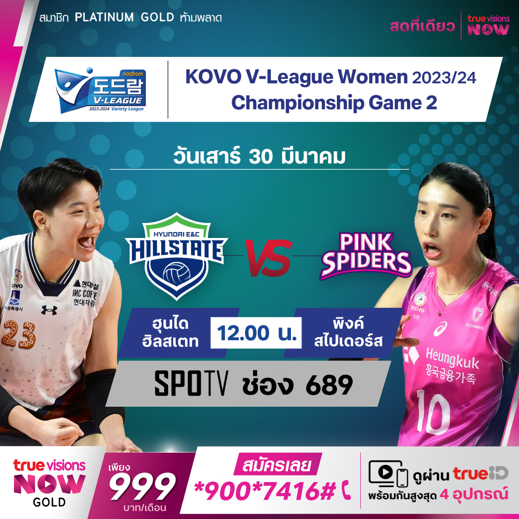 Championship Game 2 : Hyundai Hillstate vs Pink Spiders เวลา 12.00 ทางช่อง SPOTV (689)