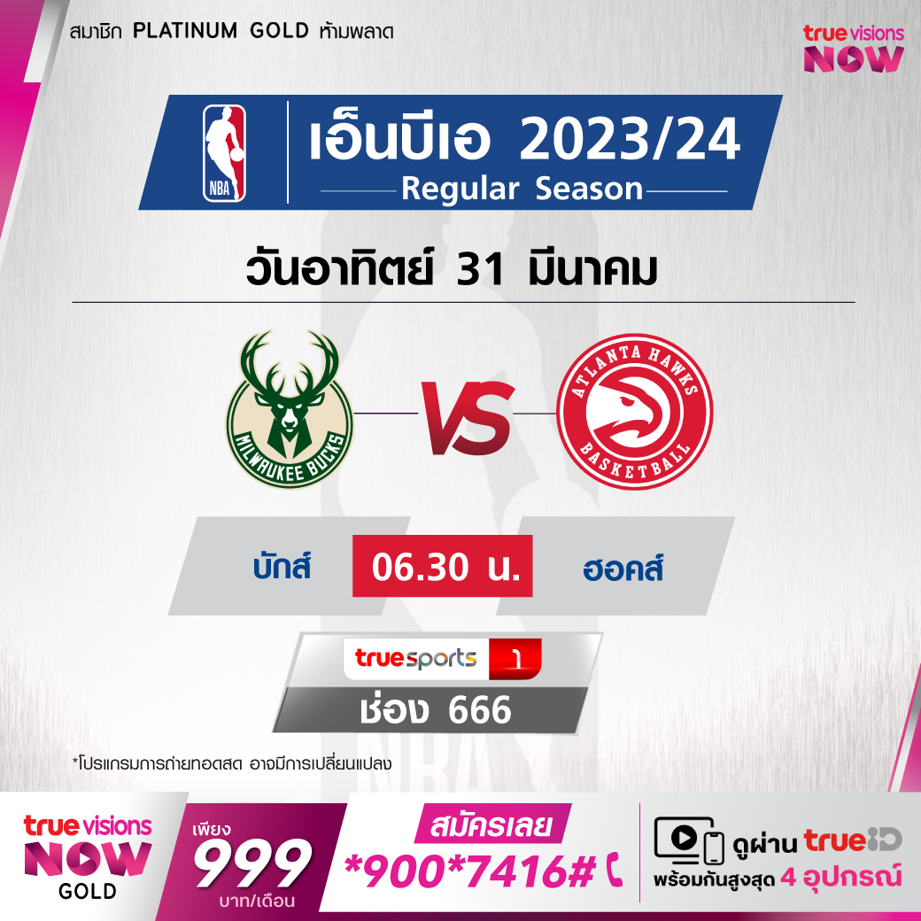 วันอาทิตย์ 31 มี.ค. Bucks Vs Hawks เวลา 06.30 ทางช่อง TS 1 (666)
