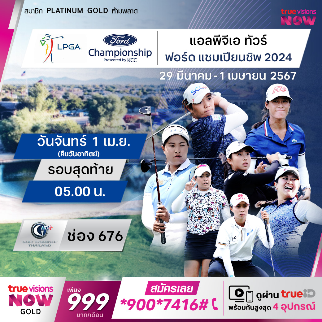 กอล์ฟหญิง แอลพีจีเอ ทัวร์ รายการ ฟอร์ด แชมเปี้ยนชิพ พรีเซนต์เต็ด บาย เคซีซี ที่สนาม เซวิลล์ กอล์ฟ แอนด์ คันทรี่ คลับ เมืองกิลเบิร์ต รัฐอริโซน่า ร่วมเชียร์โปรสาวไทยลุ้นแชมป์กับนักกอล์ฟชั้นนำของโลก พร้อมกับชิงเงินรางวัลรวม 2,250,000 เหรียญสหรัฐฯ หรือ ประมาณ 79.8 ล้านบาท ชมสด รอบแรก ถึงรอบสุดท้าย ทางทรูวิชั่นส์