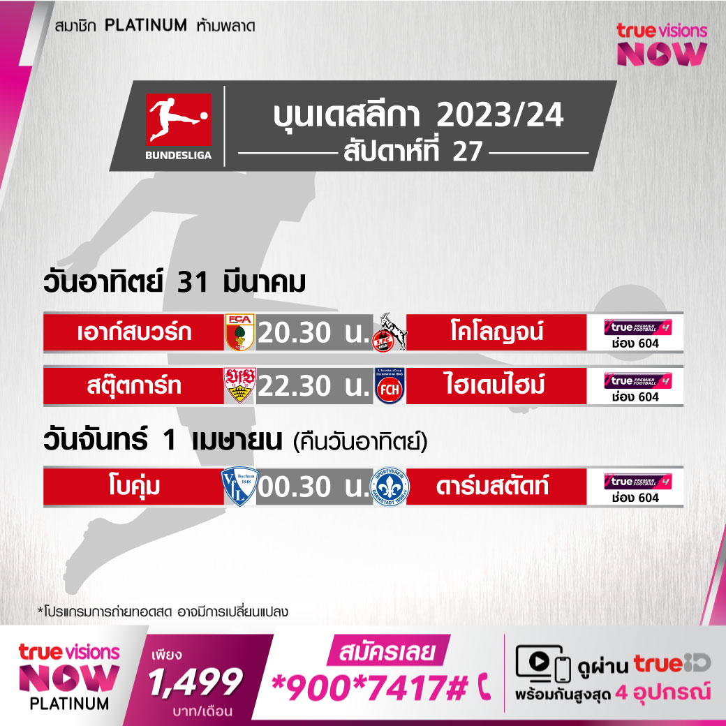 VfL Bochum vs Darmstadt เวลา 00.30-02.30 ทางช่อง TPF 4 (604)