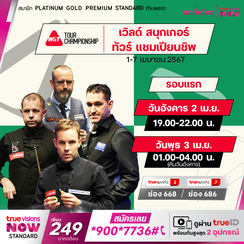 ความมันส์ของ เวิลด์ สนุกเกอร์ เก็บคะแนนสะสมโลก ใกล้ทะลุขีดสุดแล้วกับโค้งสุดท้ายของฤดูกาล สัปดาห์นี้ 12 มือพระกาฬที่เก่งที่สุดในซีซั่นนี้ นำโดย จั๊ดด์ ทรัมป์ และ รอนนี่ โอซัลลิแวน จะมาดวลความแม่นและร่วมพิสูจน์ว่าแชมป์รายการที่ยิ่งใหญ่อย่าง ทัวร์ แชมเปี้ยนชิพ 2024 จะเป็นของใคร ชมสด เอ็กซ์คลูซีฟ จากสังเวียน แมนเชสเตอร์ เซนทรัล ในเมืองแมนเชสเตอร์ ประเทศอังกฤษ ครบทุกรอบ ที่เดียวที่ ทรูวิชั่นส์