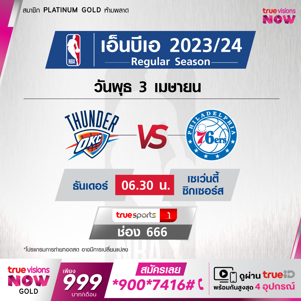 วันพุธ 3 เม.ย. Thunder Vs 76ers เวลา 06.30 ทางช่อง TS 1 (666)