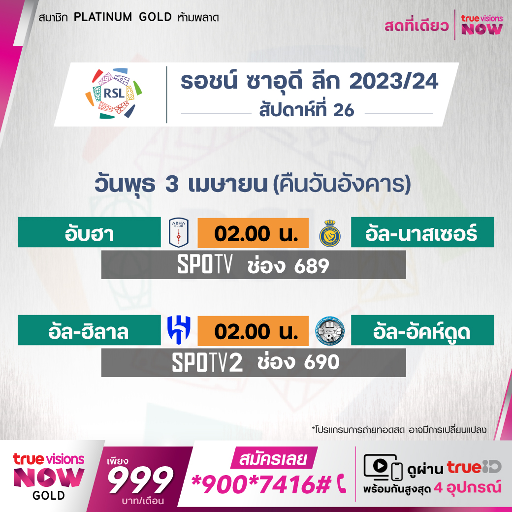 Abha vs Al-Nassr เวลา 02.00-04.00 ทางช่อง SPOTV (689)