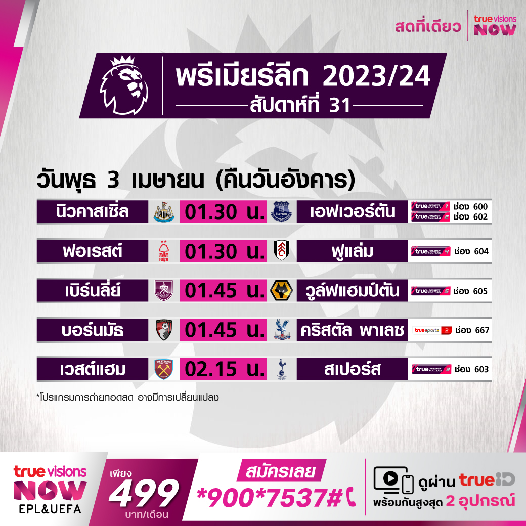 West Ham Utd vs Tottenham Hotspur เวลา 02:15 - 04:15 ทางช่อง TPF 3 (603)