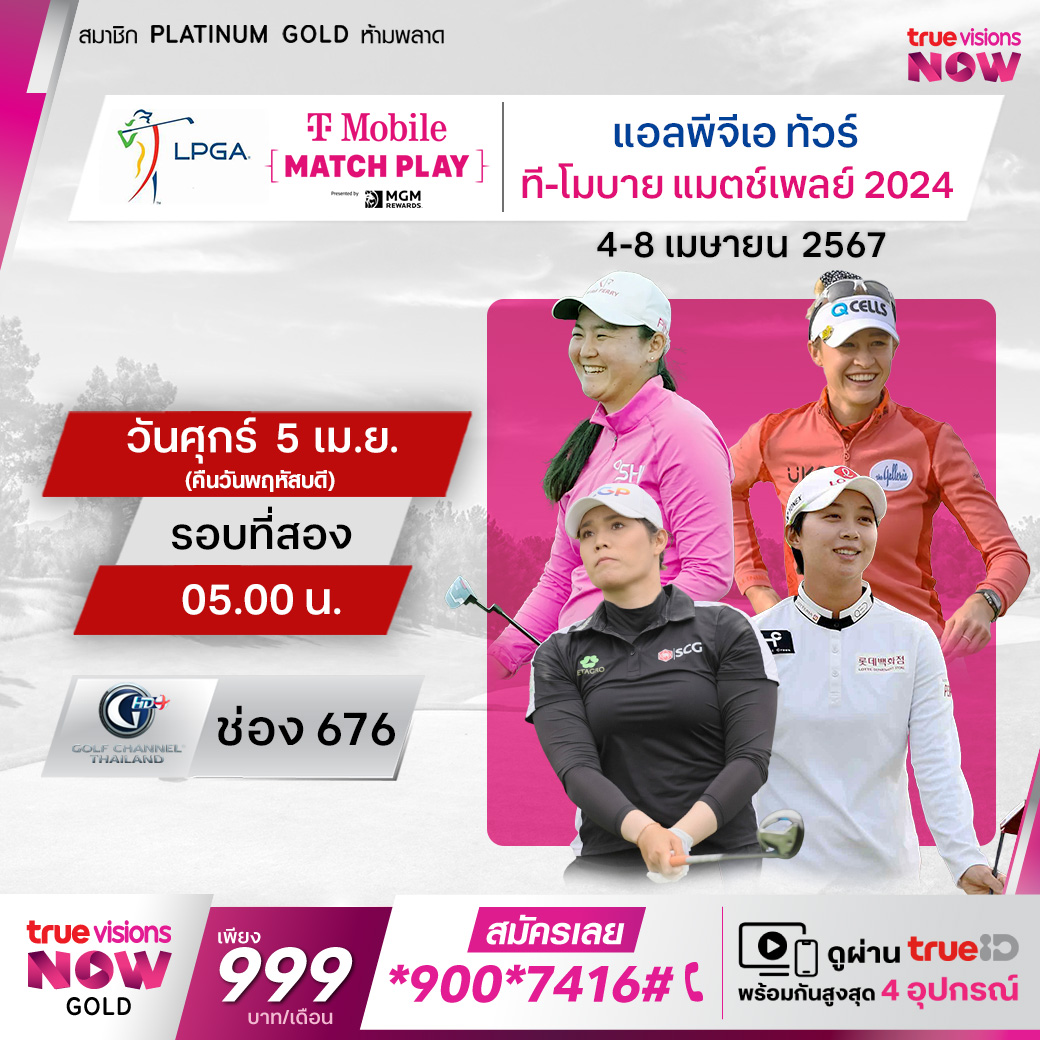 กอล์ฟหญิง แอลพีจีเอ ทัวร์ ฤดูกาล 2024 สัปดาห์นี้ แฟนๆ จะได้สัมผัสประสบการณ์ความสนุกตื่นเต้นและเร้าใจในการดวลตัวต่อตัวของโปรสาวระดับโลก ที่ผู้ชนะในแต่ละแมตช์จะเดินหน้าเข้ารอบลึกๆ ไปลุ้นเป็นแชมป์ในรายการ ที-โมบายล์ แมตช์ เพลย์ ที่สนาม ชาโดว์ ครีก ในลาสเวกัส รัฐเนวาด้า ร่วมเชียร์โปรสาวไทย โปรเมียว ปาจรีย์ อนันต์นฤการ ป้องกันตำแหน่ง พร้อมเพื่อนร่วมชาติอีกหลายคน ชมสด ครบทุกรอบ ที่ ทรูวิชั่นส์