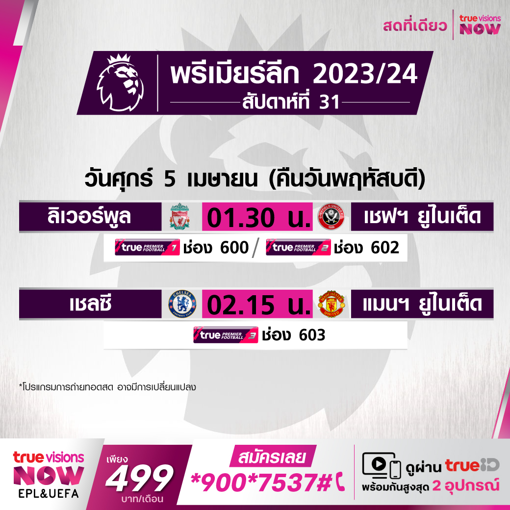 Chelsea vs Man Utd เวลา 02:15 - 04:15 ทางช่อง TPF 3 (603)