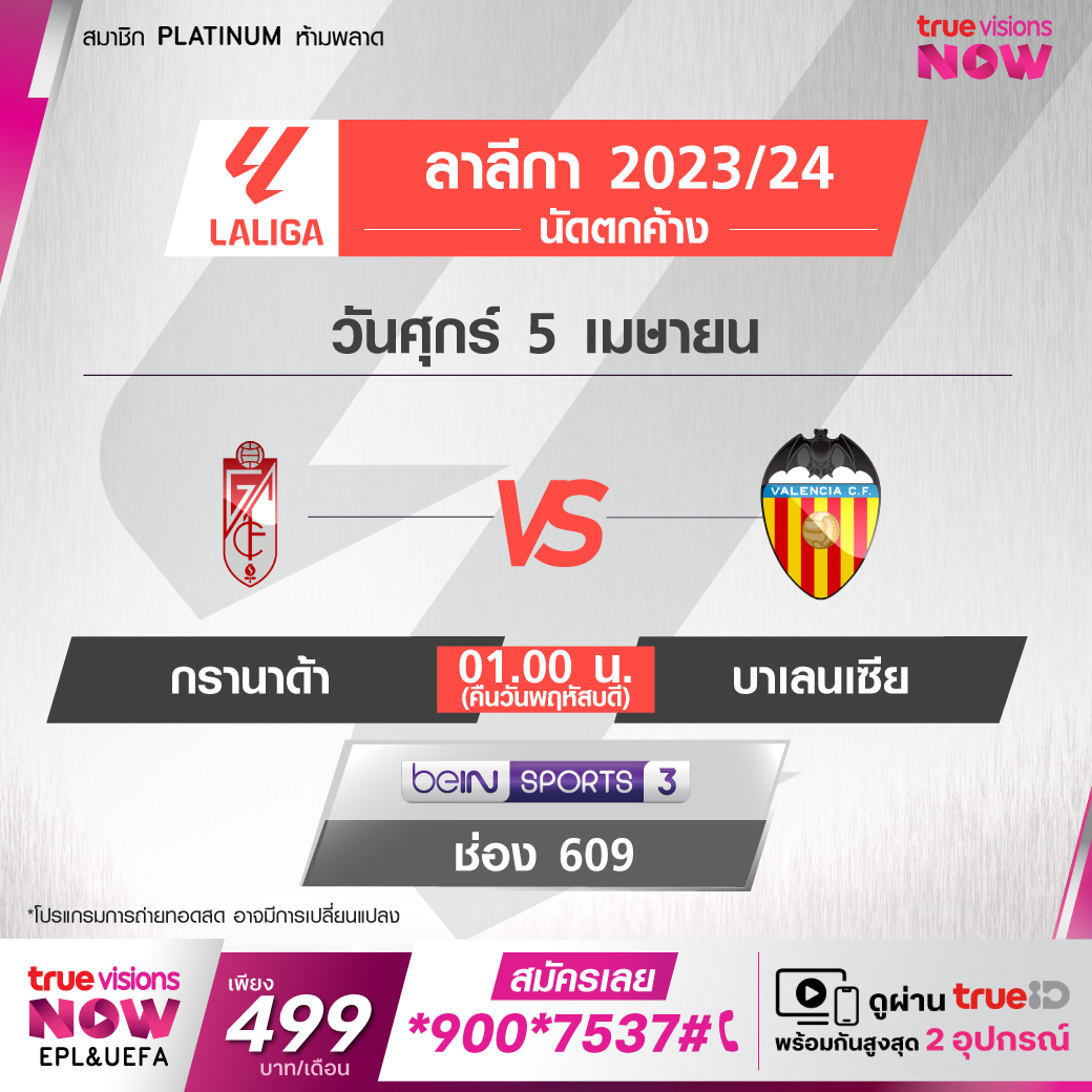 Granada vs Valencia เวลา 01.00-03.00 ทางช่อง beIN 3 (609)