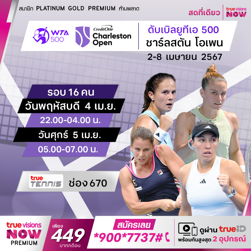 เทนนิสคอร์ทดินรายการเดียว ที่่ใช้คอร์ทดินสีเขียวสำหรับจัดการแข่งขัน กับศึกเทนนิสหญิง ดับเบิ้ลยูทีเอ ทัวร์ รายการ ชาร์ลสตัน โอเพ่น ที่เมือง ชาร์ลสตัน รัฐเซาท์แคโรไรน่า ประเทศสหรัฐอเมริกา เดินทางมาถึงในรอบ 16 คนสุดท้ายแล้ว ใครจะคว้าแชมป์ไปครอง ชมสด ที่เดียวที่ ทรูวิชั่นส์