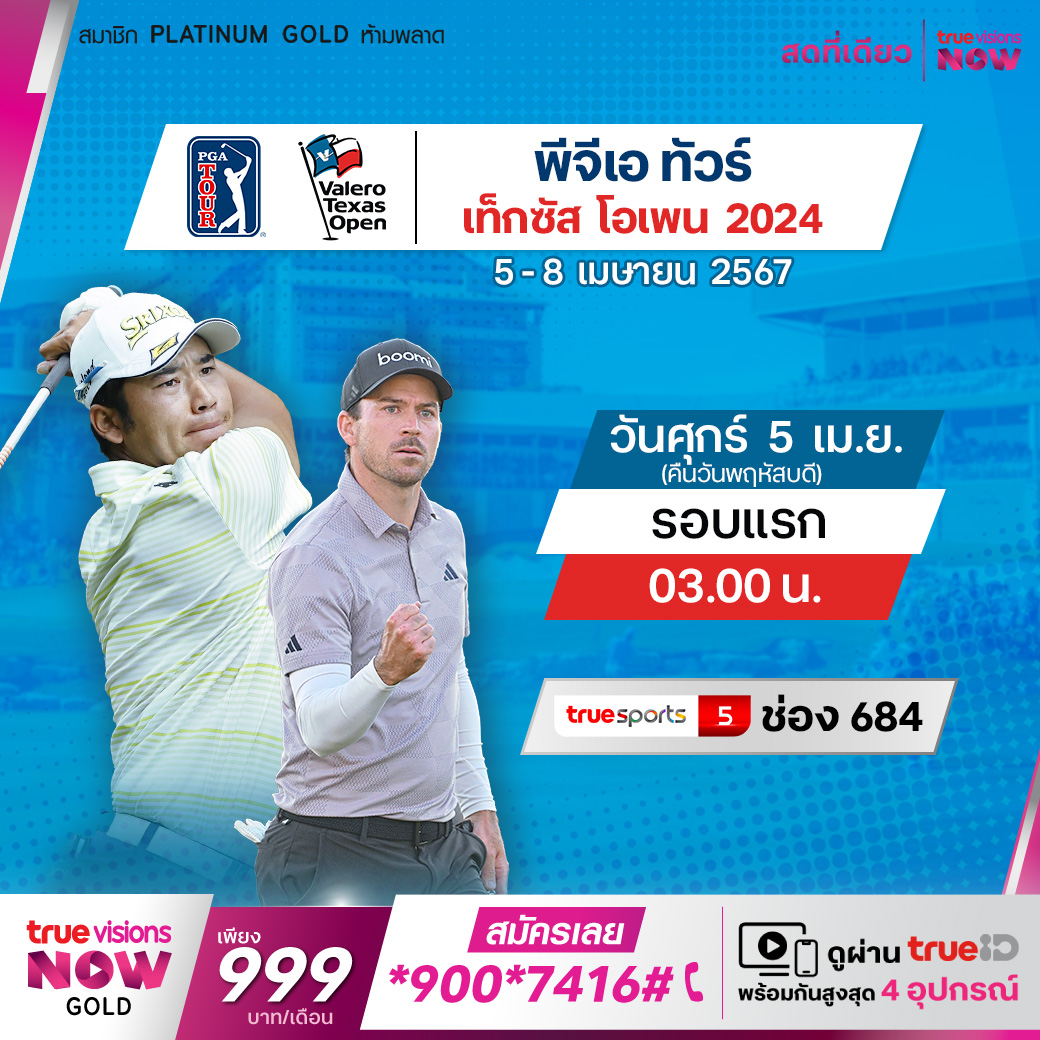 กอล์ฟ พีจีเอ ทัวร์ สัปดาห์นี้ เป็นการแข่งขันในรายการ วาเลโร เท็กซัส โอเพ่น ที่สนาม ทีพีซี ซานอันโตนิโอ รัฐเท็กซัส โดยมีเงินรางวัลรวมให้ชิง กันมากถึง 9,200,000 เหรียญสหรัฐฯ โปรชื่อดังแถวหน้าของวงการ ตบเท้าเข้าร่วมการแข่งขันกันอย่างคับคั่ง เป็นการเตรียมความพร้อมก่อนที่จะเข้าสู่เมเจอร์แรกของปีในสัปดาห์หน้า ชมสด เอ็กซ์คลูซีฟ ครบทุกรอบ ที่เดียวที่ ทรูวิชั่นส์