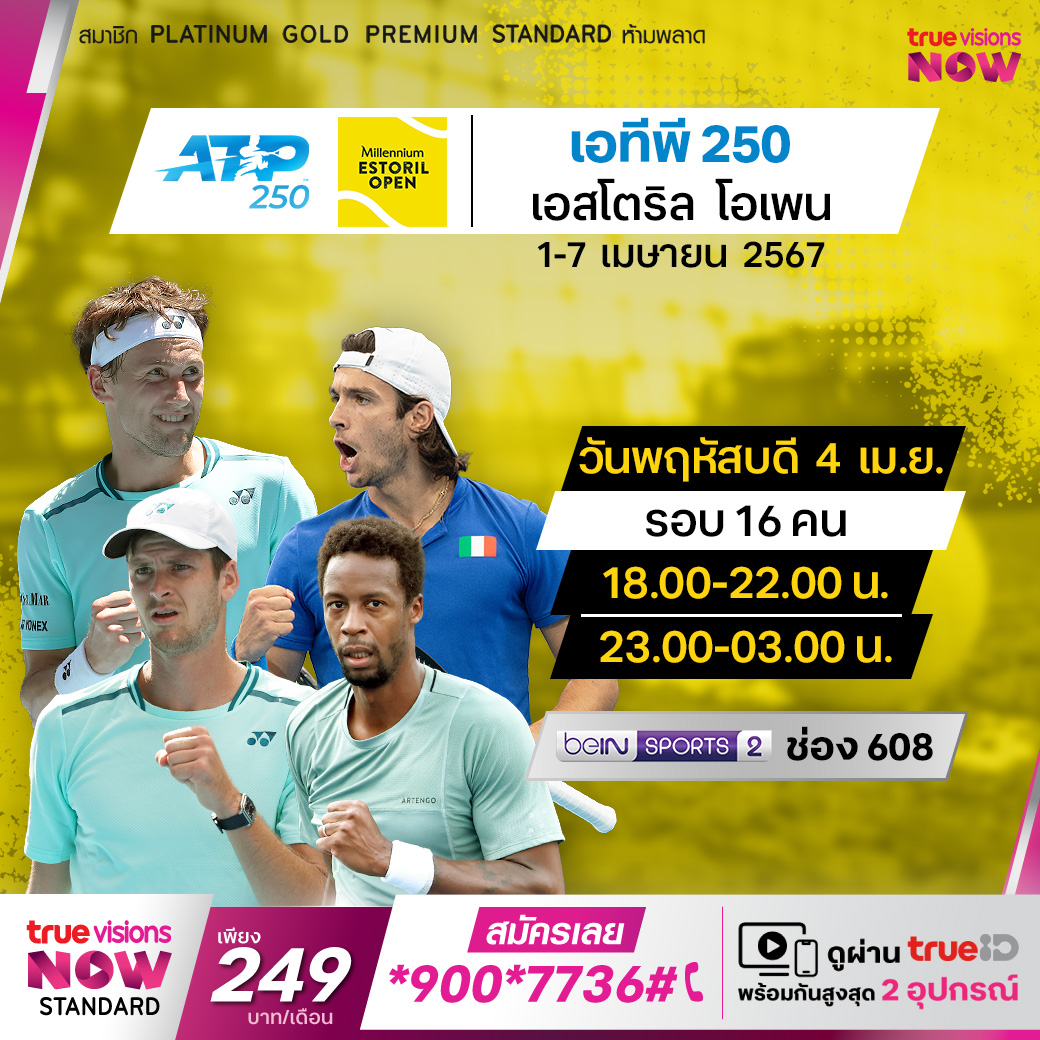 ศึกเทนนิส เอทีพี ทัวร์ รายการคอร์ทดินรายการแรกของปีนี้บนทวีปยุโรป ในรายการ เอสโตริล โอเพ่น ที่เมือง เอสโตริล ประเทศโปรตุเกส มาถึงในรอบ 16 คนสุดท้าย ใครจะเดินหน้าคว้าแชมป์ไปครอง ชมสด ครบทุกรอบที่ ทรูวิชั่นส์