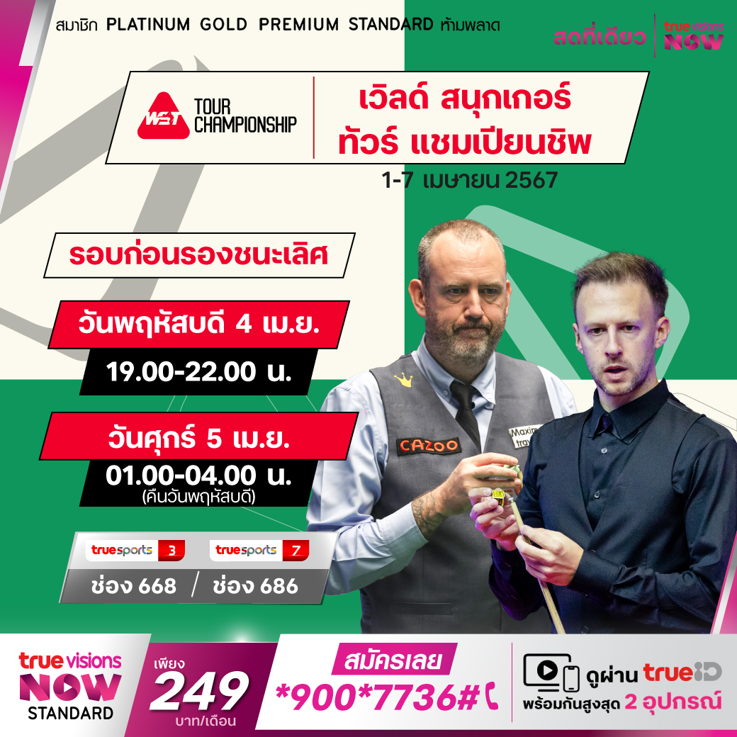 ศึก เวิลด์ สนุกเกอร์ เก็บคะแนนสะสมโลก รายการที่ยิ่งใหญ่อย่าง ทัวร์ แชมเปี้ยนชิพ 2024 เดินทางมาถึงในรอบก่อนรองชนะเลิศแล้ว ใครจะเดินหน้าคว้าแชมป์รายการนี้ไปครอง ชมสด เอ็กซ์คลูซีฟ จากสังเวียน แมนเชสเตอร์ เซนทรัล ในเมืองแมนเชสเตอร์ ประเทศอังกฤษ ครบทุกรอบ ที่เดียวที่ ทรูวิชั่นส์