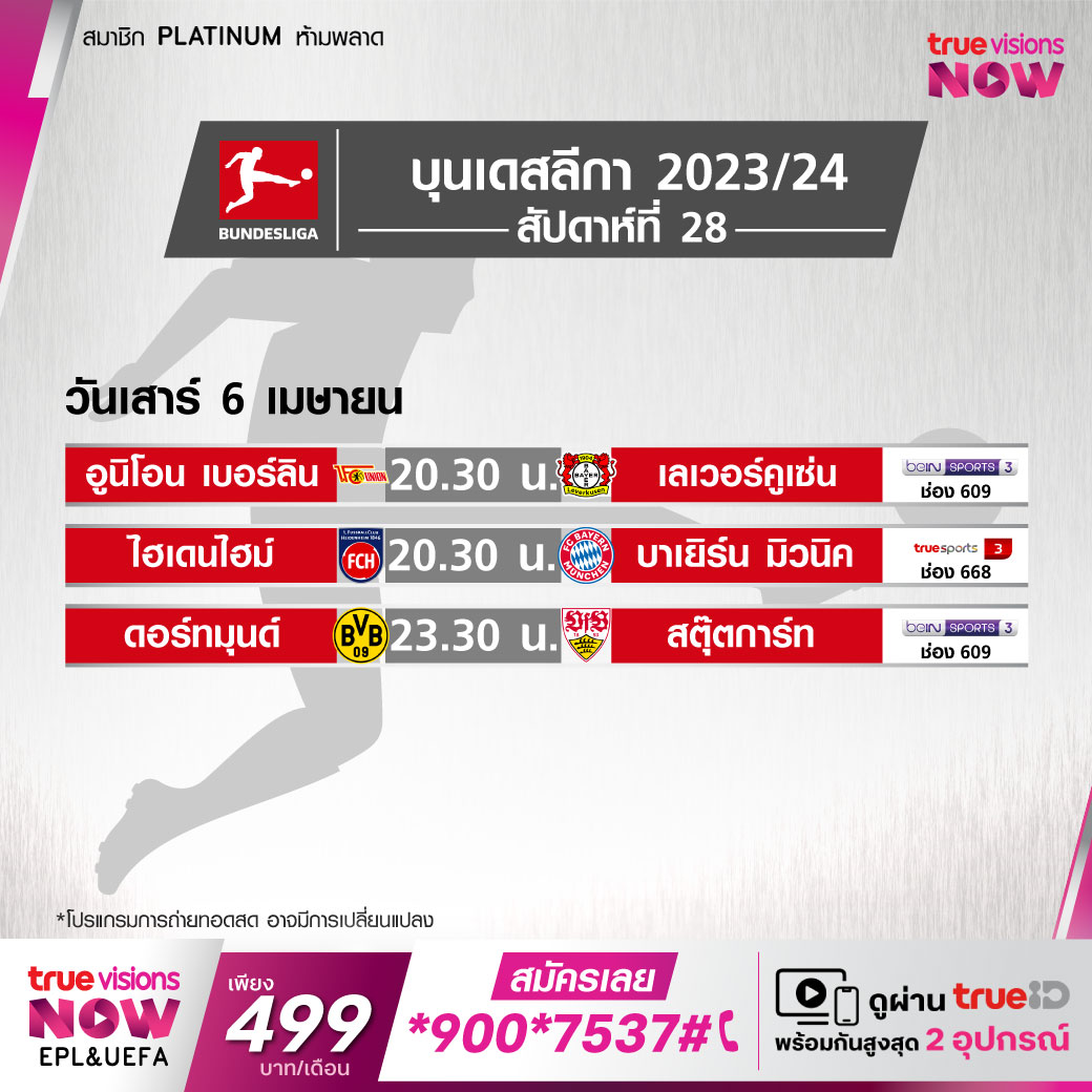 FC Union vs Leverkusen เวลา 20.30-22.30 ทางช่อง beIN 3 (609)