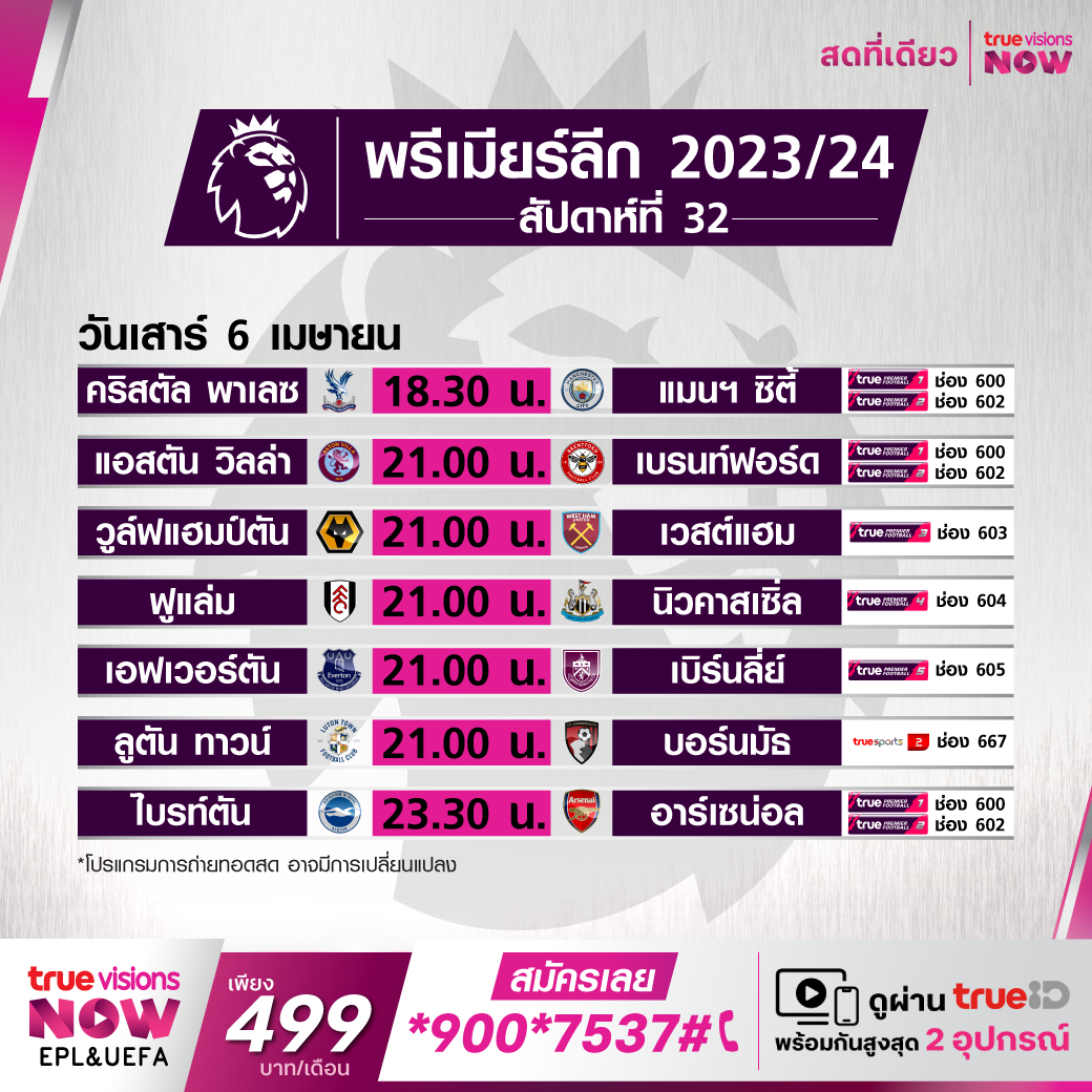 Brighton vs Arsenal เวลา 23:30 - 01:30 ทางช่อง TPF 1(600) / TPF 2 (602)